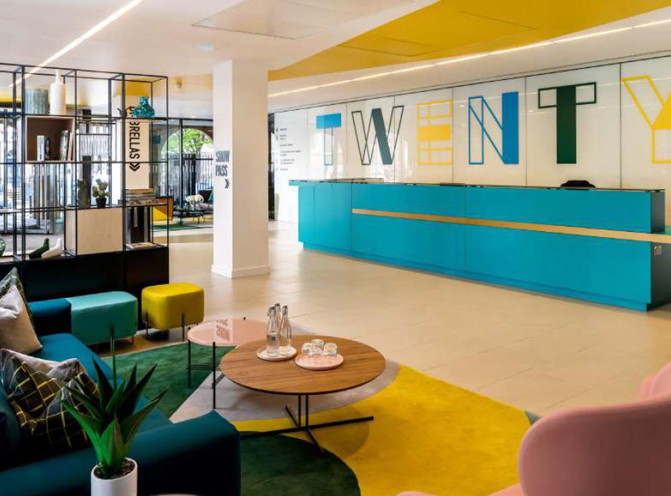 The bright and colourful Allotropy rug was commissioned for the lobby of a high end property – Twenty owned by the Great Portland Estates London.